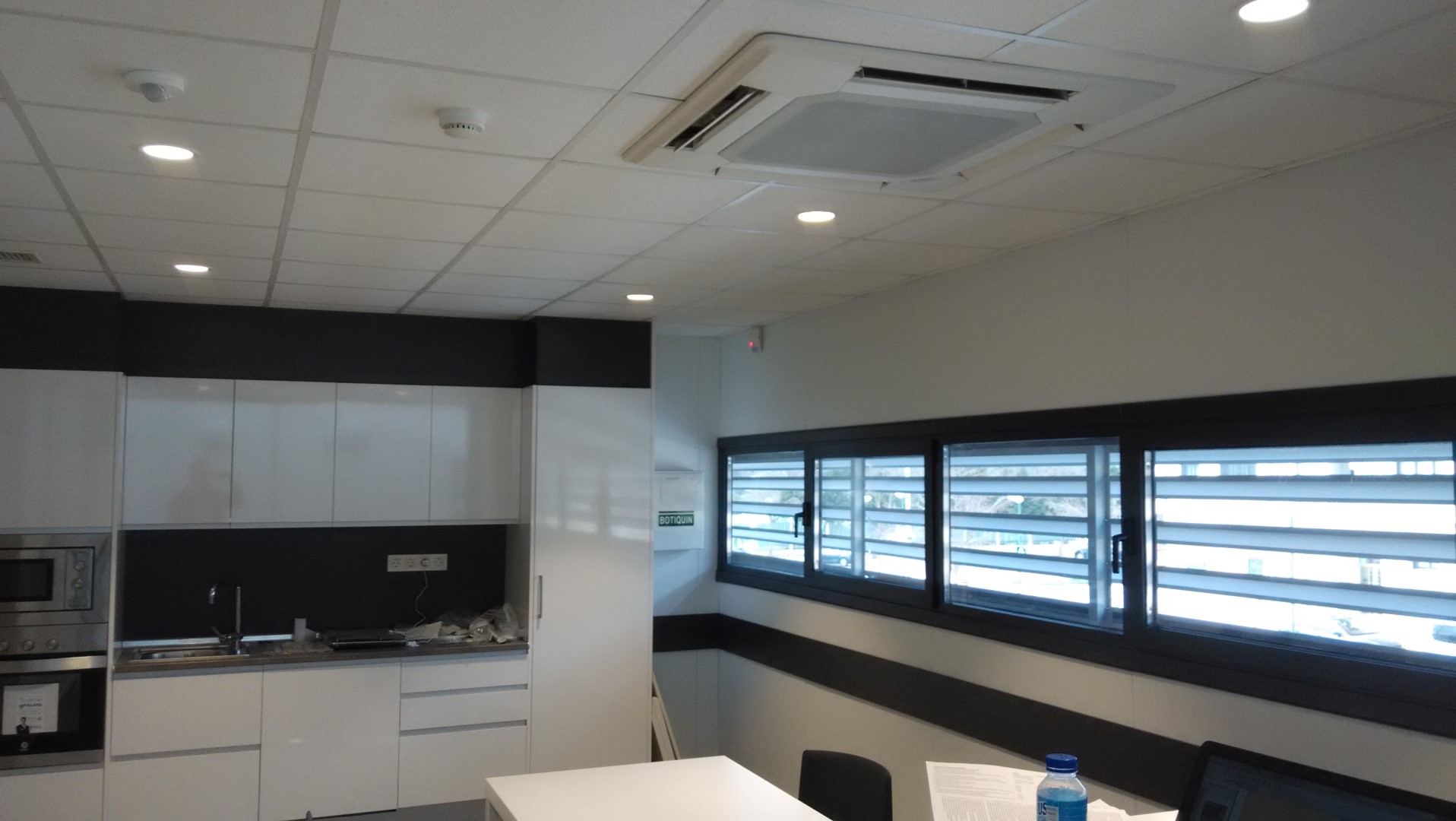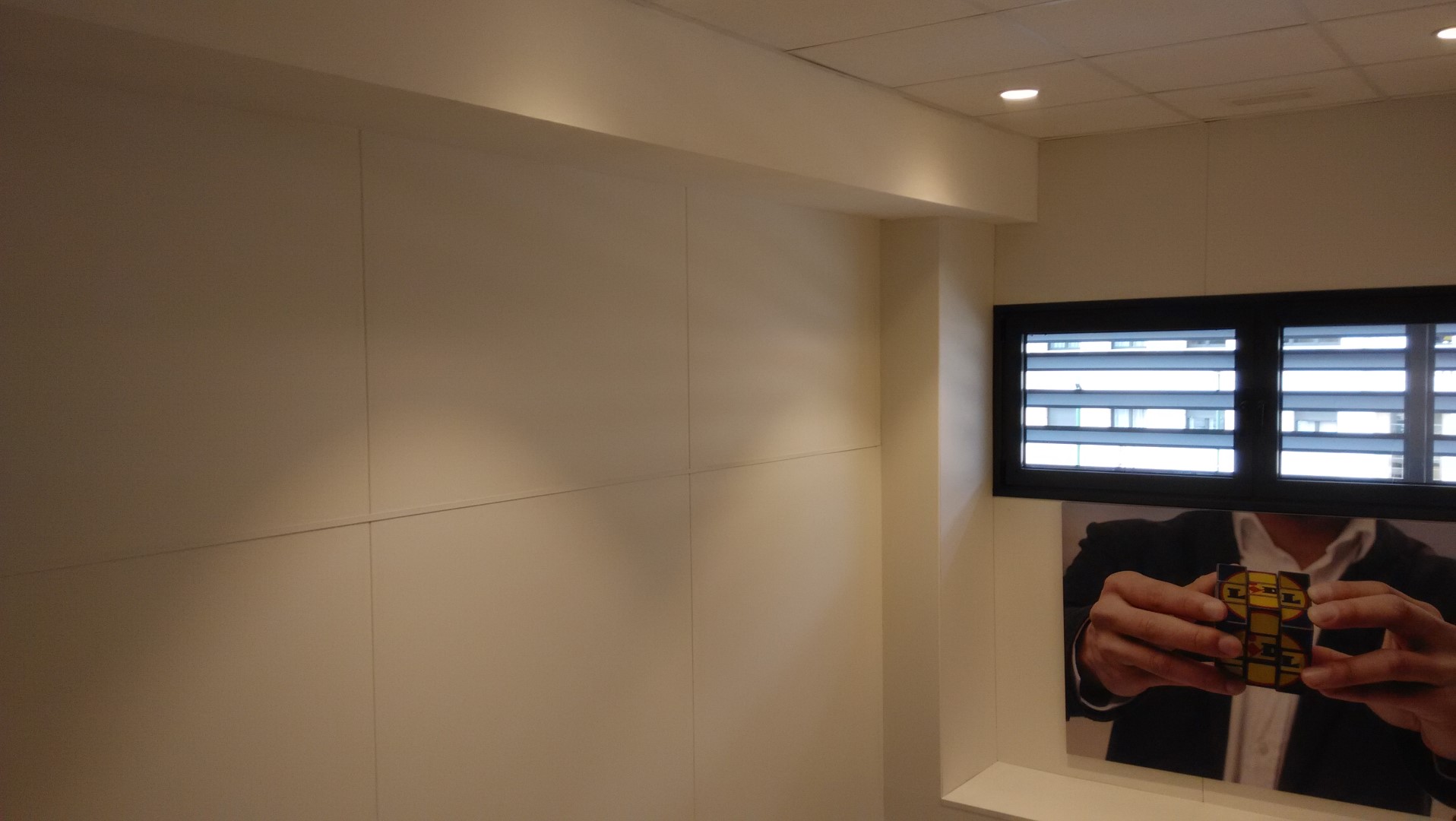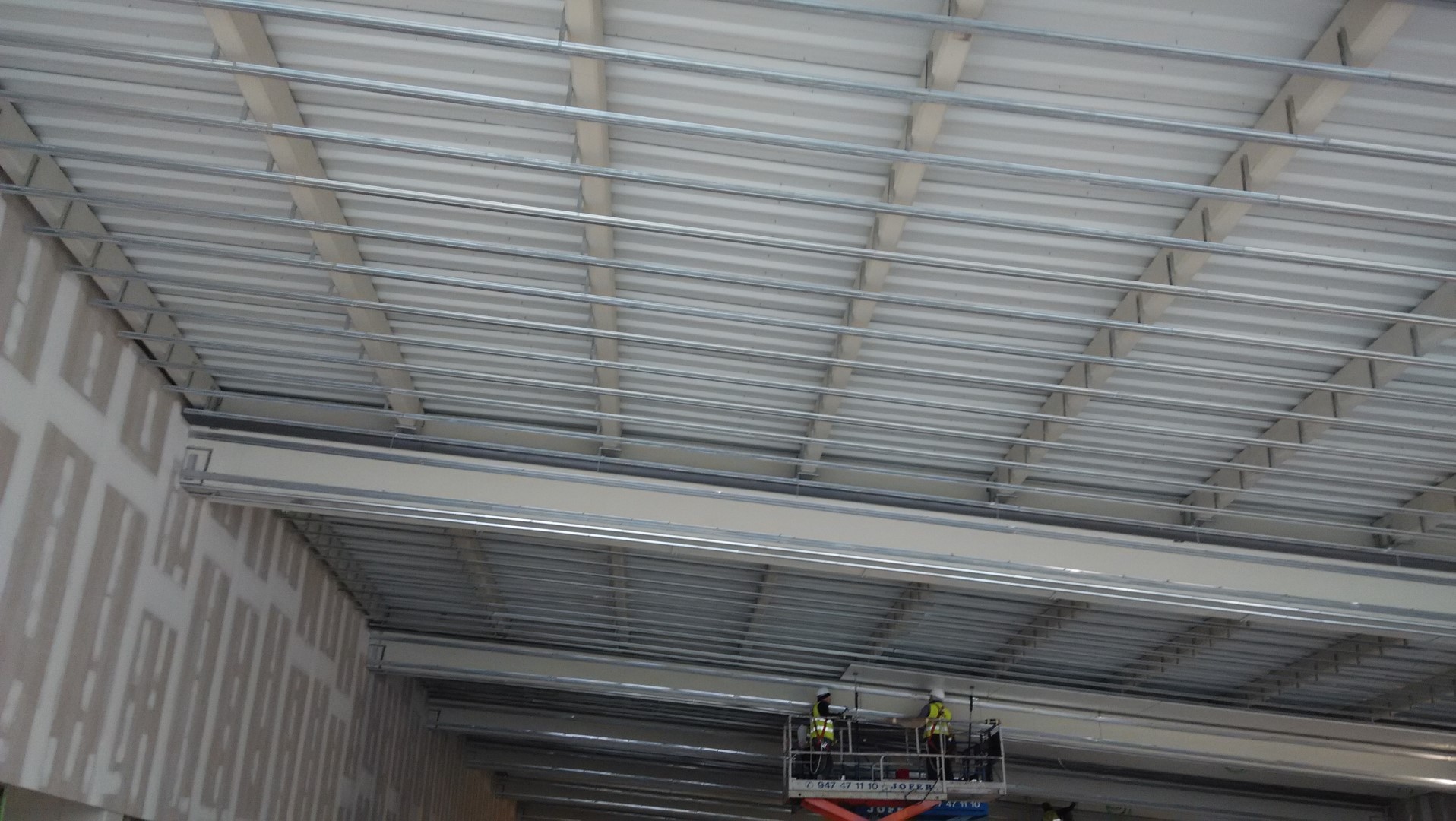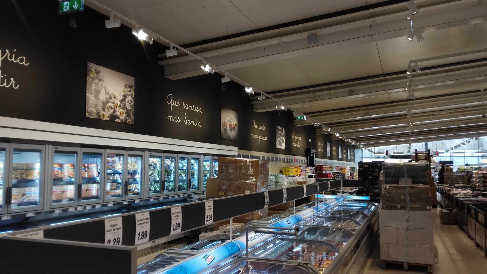 Construcción integral del supermercado Lidl en Burgos. Trasdosados, tabiques, techos continuos, techos desmontables, Finiplac y sectorizaciones EI.