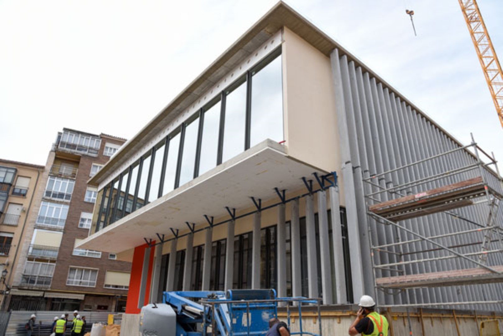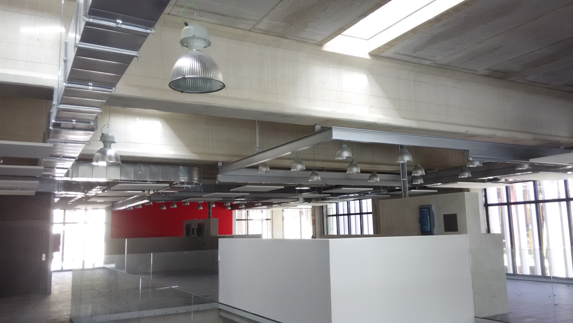 Construcción integral del Mercado de Abastos en Soria. Trasdosados, tabiques, techos continuos, techos desmontables, techos acústicos Ecophon de Islas.